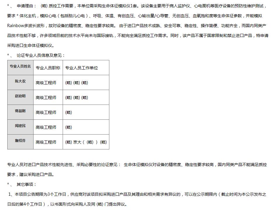 就像上面招標文件里說的那樣的功能要求,我來分析一下,按照上面的寫的要求只能是進口的某一個品牌的產品,像要求的心量輸出/心導管這個要求來說從使用上,中國醫療產品檢測上這個功能是不能用的,因為接口不同,我們國家也沒有這個功能檢測的要求。