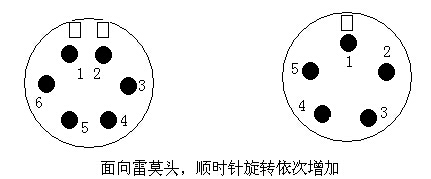 下圖對(duì)應(yīng)的為雷莫頭的管腳順序。